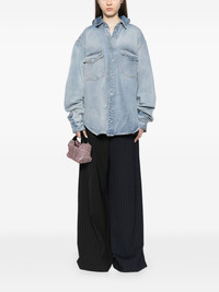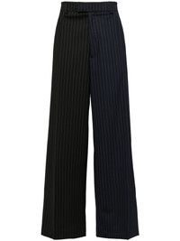 straight-leg wool trousers Highlights - Blue/black/white - Virgin wool blend - Pinstripe pattern - Pressed crease - Belt loops - Concealed fly and buckle fastening - Slip pockets to the sides - Rear button-fastening pocket Made in Italy Composition Lining: Viscose 100% Outer: Virgin Wool 98%, Elastane 2% SIZE & FIT Model measurements Height 6 ft 2 in(1.87 m) Bust/Chest 34.25 in(87 cm) Hips 36.22 in(92 cm) Waist 29.52 in(75 cm) FittingInformation This piece is unisex and is designed with a straight-cut over the leg whether you usually select women's or men's sizes Particularly long in length; consider your own measurements Made from a midweight non-stretch fabric