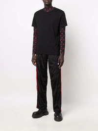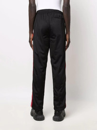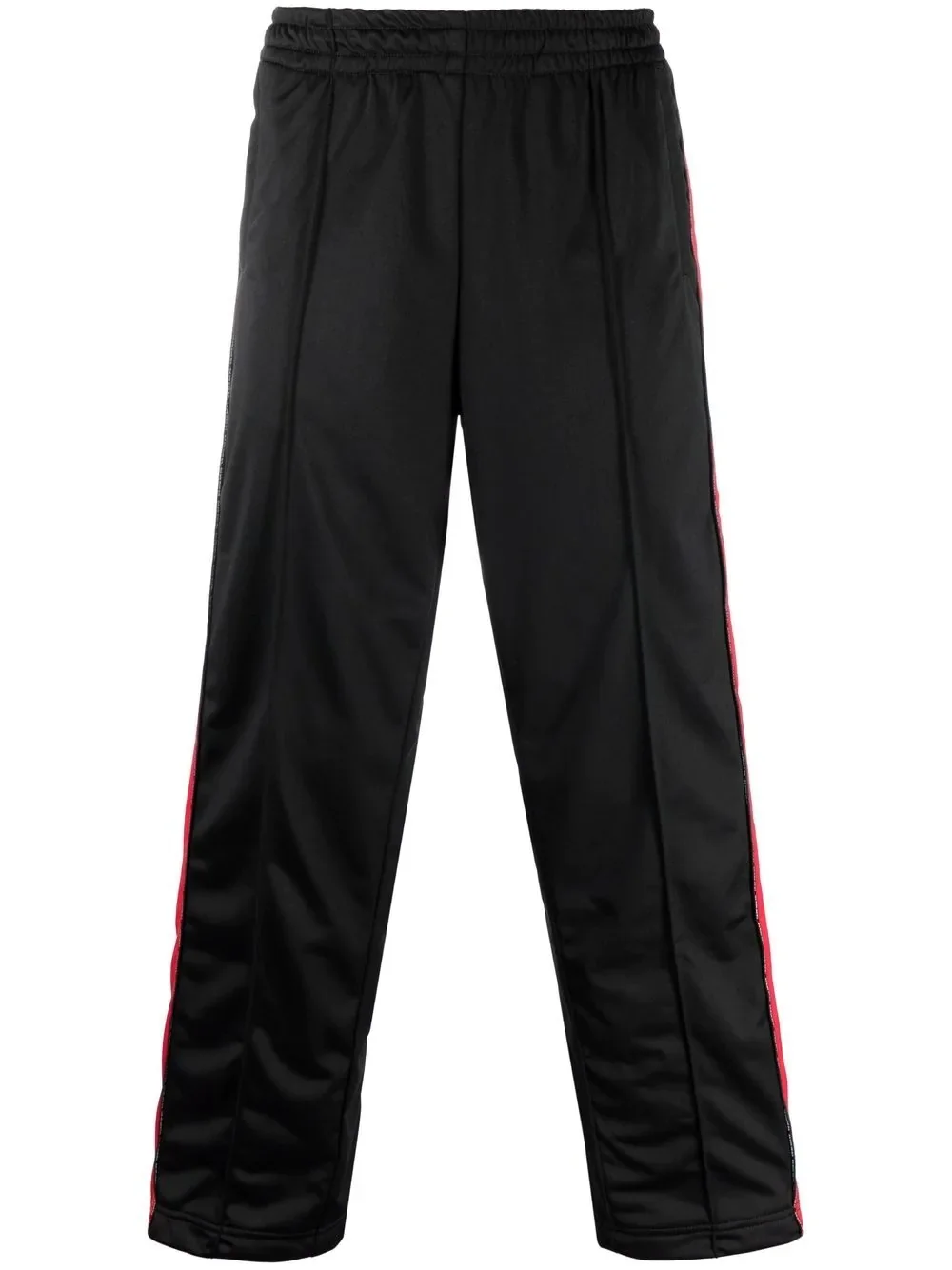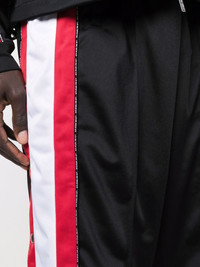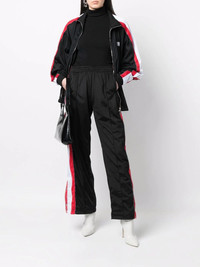 straight-leg track pants black side stripe detailing elasticated waistband slip pockets to the sides rear welt pocket side press-stud fastening straight leg Made in Italy Composition Outer: Polyester 100% Lining: Polyamide 100% SIZE & FIT Model measurements Height 5 ft 10 in(1.78 m) Bust/Chest 31.49 in(80 cm) Hips 36.22 in(92 cm) Waist 25.59 in(65 cm) FittingInformation This piece fits true to size. We recommend you get your regular size Designed for a slim fit at the waist and loose over the leg Made with a mid-weight fabric Washing instructions Machine Wash