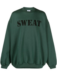 Sweat cotton-blend sweatshirt Highlights - Racing green - Cotton blend - Jersey texture - Text print - Embroidered logo to the rear - Crew neck - Drop shoulder - Long sleeves - Ribbed cuffs and hem - When buying this unisex item, keep in mind that it is graded in standard men's sizing. Imported Composition Cotton 80%, Polyester 20% SIZE & FIT Model measurements Height 5 ft 11 in(1.8 m) Bust/Chest 32.67 in(83 cm) Hips 36.22 in(92 cm) Waist 24.4 in(62 cm) FittingInformation This unisex piece is designed for an oversized fit whether you usually select women's or men's sizes Made from a midweight non-stretch fabric, this piece offers minimal elasticity when worn This piece fits true to size – take your usual size Washing instructions Machine Wash