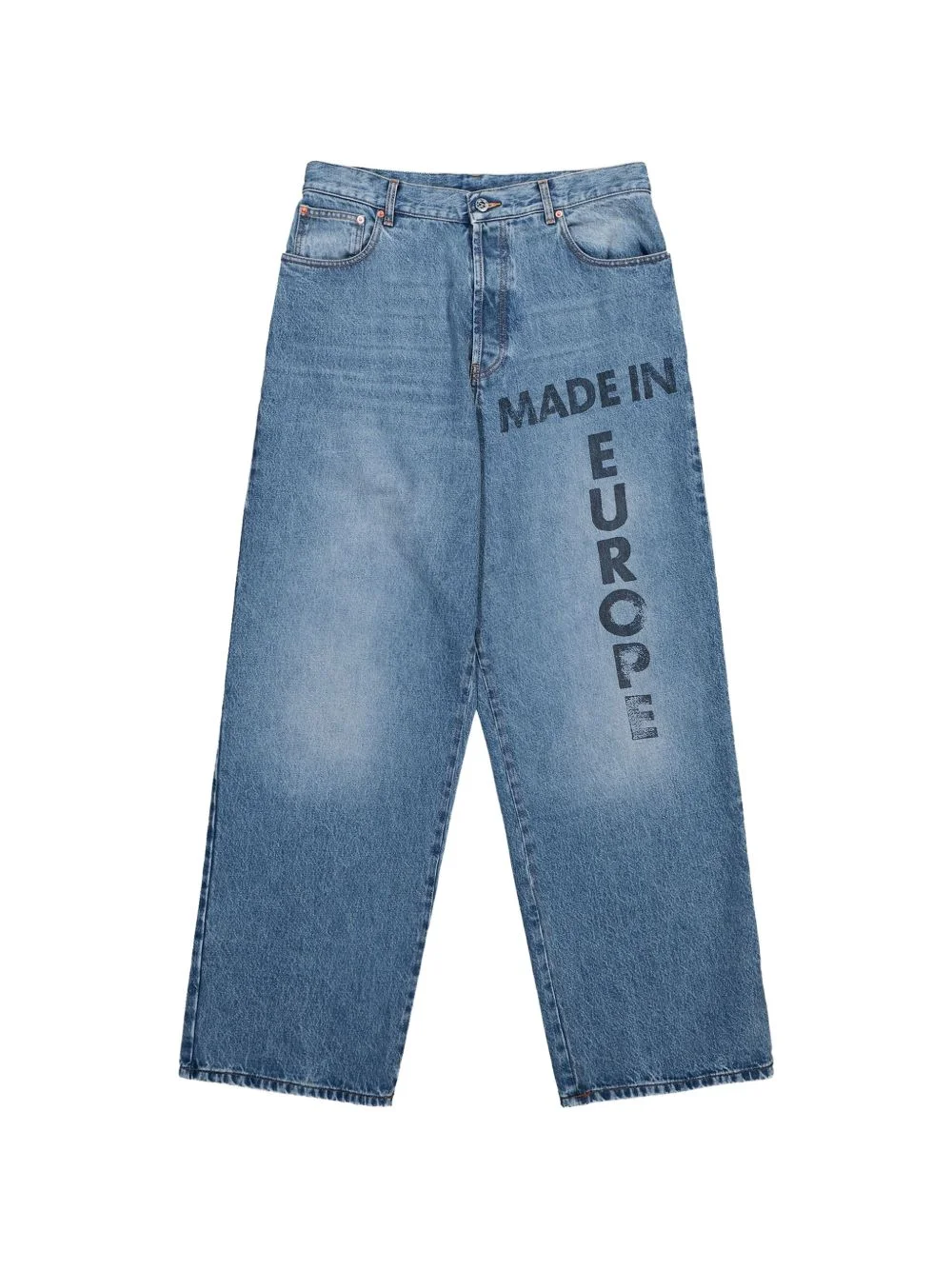 text-print jeans Highlights - Blue - Cotton - Five pockets - Contrast stitching - Logo patch - Straight leg Made In Italy Composition Cotton 100% Washing instructions Read Manufacturer Guidelines