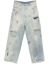 Trashed jeans Highlights - Light blue - Button fly fastening - Classic five pockets - Belt loops - When buying this unisex item, keep in mind that it is graded in standard men's sizing. Made in Italy Composition Cotton 100% SIZE & FIT Model measurements Height 5 ft 9 in(1.76 m) Bust/Chest 32.28 in(82 cm) Hips 35.43 in(90 cm) Waist 25.19 in(64 cm) FittingInformation This piece is unisex and is designed with a wide-leg, whether you usually select women's or men's sizes Sturdy and hard-wearing, this denim piece offers no stretch Washing instructions Machine Wash