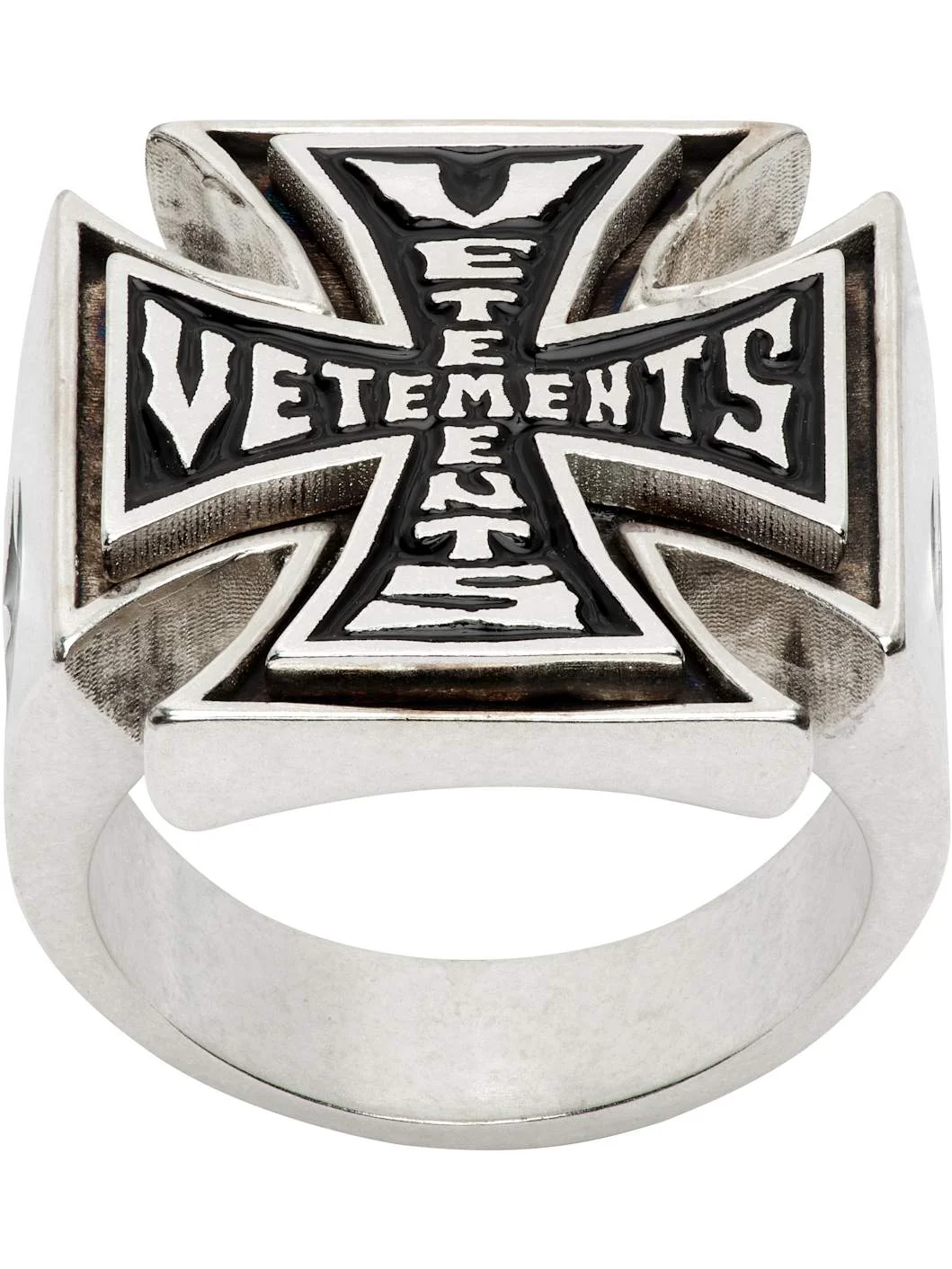 Signet ring in silver-tone brass. · Logo engraved at face and outer band · Enameled graphic in black at face and sides Supplier color: Silver Brass. Made in Italy 261669M147003