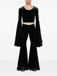 velour cropped top Highlights - Black - Velour - Stretch-design - Round neck - Extra-long sleeves - Flared cuffs - Internal logo tag - Cropped - Straight hem - When buying this unisex item, keep in mind that it is graded in standard men's sizing. Imported Composition Polyamide 85%, Elastane 15% SIZE & FIT Model measurements Height 5 ft 9 in(1.76 m) Bust/Chest 31.88 in(81 cm) Hips 35.43 in(90 cm) Waist 24.8 in(63 cm) FittingInformation This unisex piece is designed for a close fit whether you usually select women's or men's sizes Constructed with additional length on the sleeve Made from a midweight stretch fabric, this piece offers elasticity and flexibility when worn Washing instructions Hand Wash