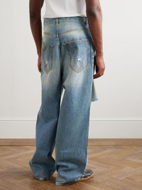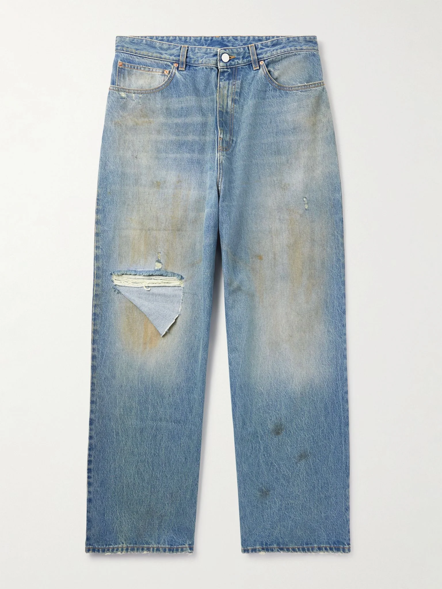 Oversized proportions have been Vetements' design signature since the mid-2010s. Made in Italy, these baggy jeans are cut from denim and thoroughly distressed with rips, tears and stains. Size & Fit - Fits true to size. Take your normal size - Relaxed-straight leg, low-crotch style - Mid-weight, non-stretchy denim - Model is shown wearing a 32 - Model measures: waist size 32, height 6'0"/ 183cm Details & Care - Blue denim - Button and zip fastening - 100% cotton - Machine wash