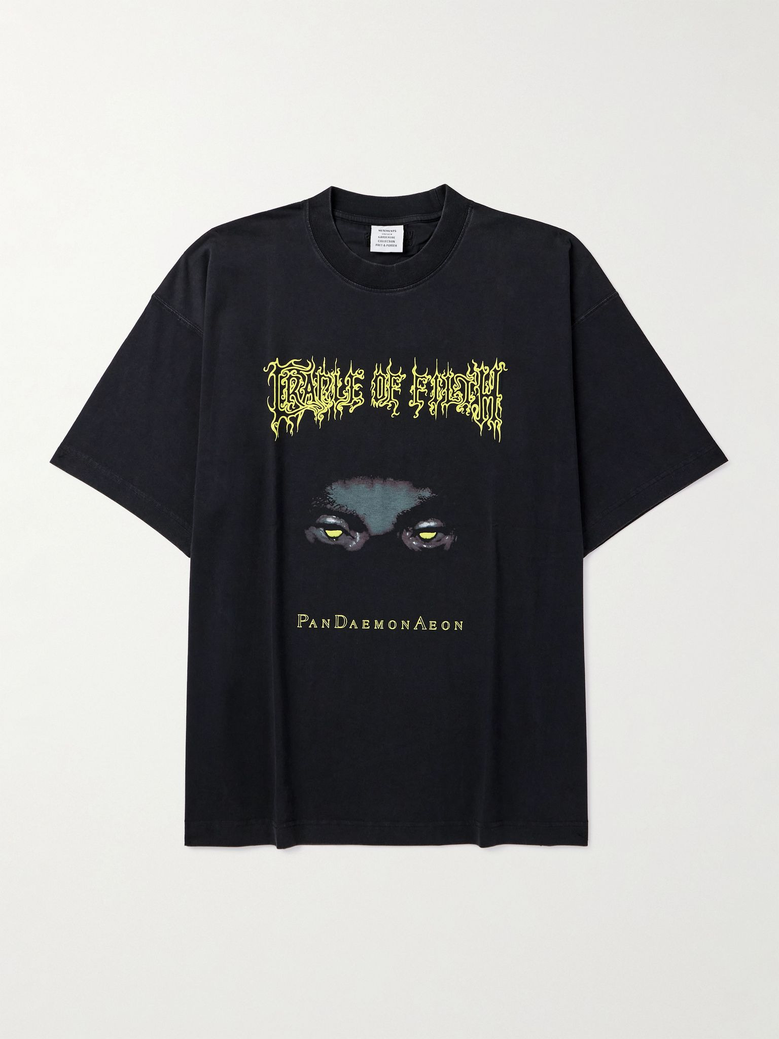 Vetements' T-shirt is printed with the eerie artwork of Cradle of Filth's first music video, 'PanDaemonAeon'. It's cut from cotton-jersey for an oversized fit and has a faded wash to give it a lived-in look. Size & Fit - Intended to be oversized; we recommend sizing down if you prefer a closer fit - Mid-weight, slightly stretchy fabric - Model is shown wearing a S - Model measures: chest 36"/ 92cm, height 6'0"/ 183cm Details & Care - Multicoloured cotton-jersey - 100% cotton - Machine wash