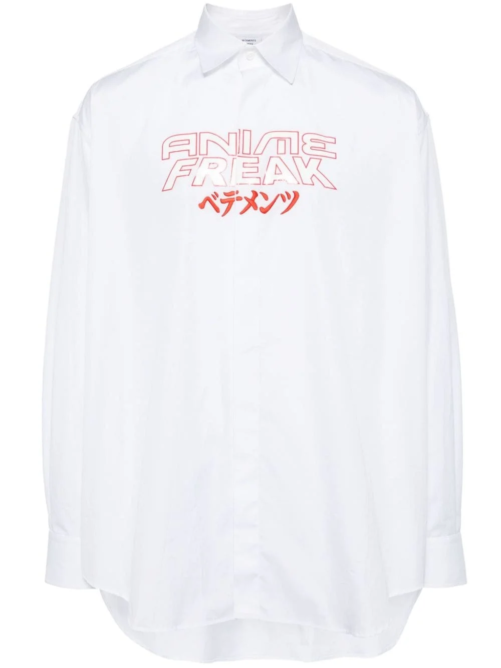 Anime Freak cotton shirt Highlights - Optical white - Cotton - Graphic print to the front - Classic collar - Concealed front button fastening - Drop shoulder - Long sleeves - Buttoned cuffs - Rear curved hem - When buying this unisex item, keep in mind that it is graded in standard men's sizing. Made in Italy Composition Cotton 100% SIZE & FIT Model measurements Height 5 ft 10 in(1.78 m) Bust/Chest 32.67 in(83 cm) Hips 37 in(94 cm) Waist 25.59 in(65 cm) Measurement CHEST 59.05 in(150 cm) SLEEVE LENGTH 25.98 in(66 cm) LENGTH 35.03 in(89 cm) WAIST 58.26 in(148 cm) Shoulder Width 22.04 in(56 cm) FittingInformation This piece is unisex – if you usually select men's sizing expect a loose fit throughout; if you usually select women's sizes, expect an oversized fit Constructed with additional length on the sleeve Made from a midweight non-stretch fabric Washing instructions Machine Wash