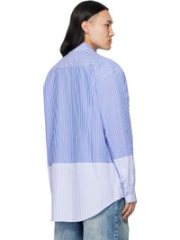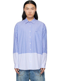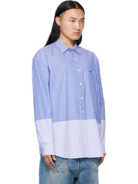 Lightweight cotton poplin shirt. · Stripes throughout · Spread collar · Button closure · Logo-embroidered patch pocket at chest · Shirttail hem · Paneled hem and sleeves · Buttoned barrel cuffs · Pleats at back yoke Supplier color: Light blue pinstripes 100% cotton. Made in Italy 252669M192001