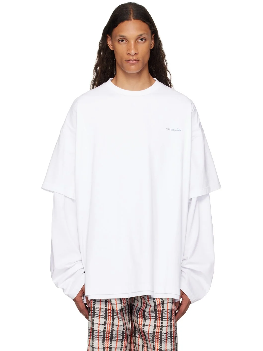 White 'Date Me Please' Layered Long Sleeve T-Shirt