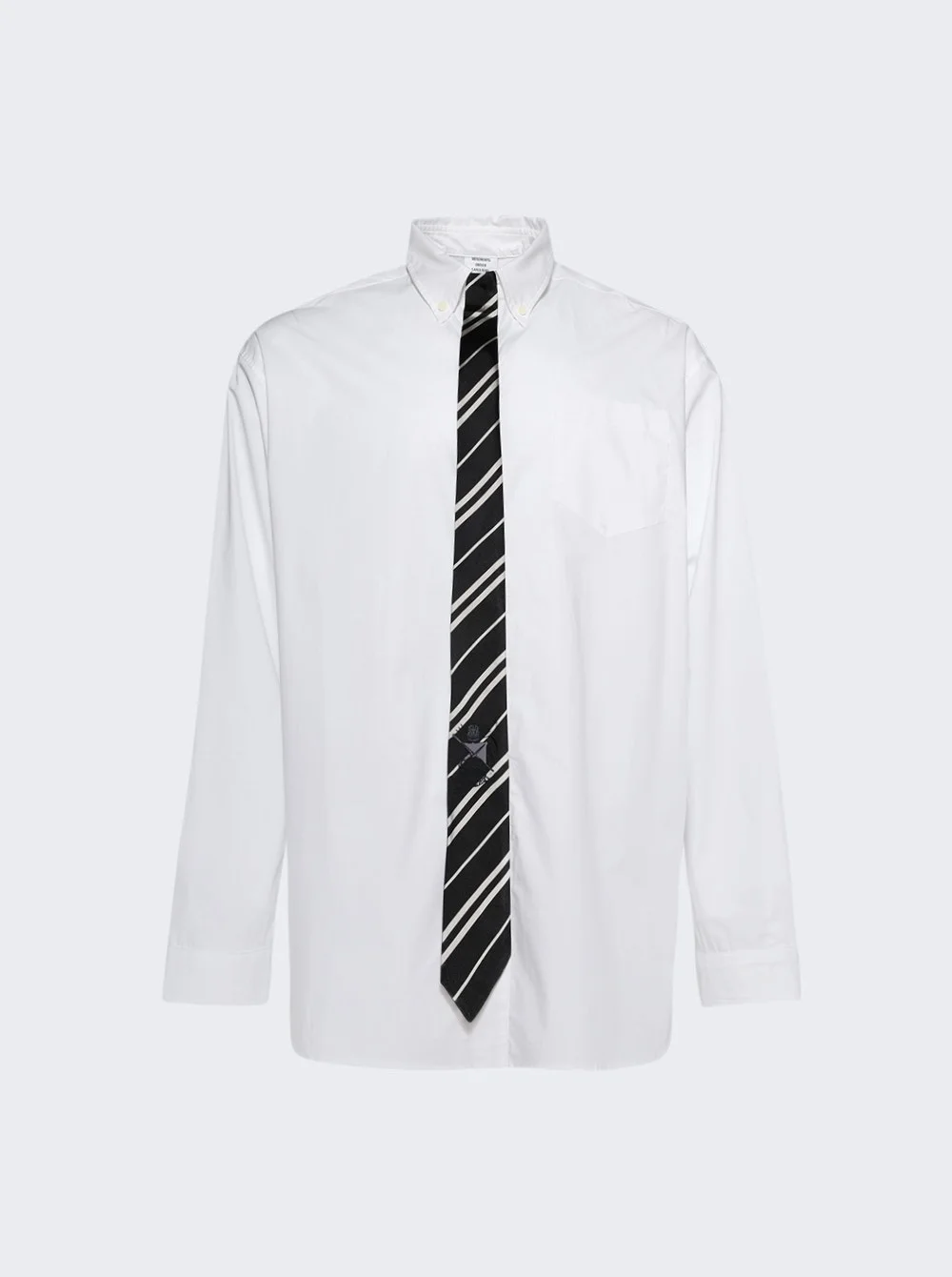 Details - Long sleeve classic collared shirt - Attached striped tie - Regular fit - Buttoned collar and barrel cuffs - Material: 100% Cotton Size Information: Vendor Color Code: Brand Style: UH76SH280W Designer/Brand: VETEMENTS