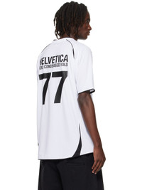 Mesh jersey. · Paneled construction · V-neck · Text printed and embroidered at front and back · Graphic embroidered at chest · Raglan sleeves · Logo embroidered at back Supplier color: White 100% polyester. Made in Portugal 252669M213033