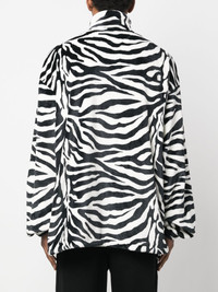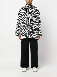zebra-pattern zip-fastening coat Inspired by everyday fashion with a subversive edge, this zip-fastening coat from Vetements features a simple yet bold all-over zebra-stripe pattern. Highlights - Black/white - Animal pattern - Funnel neck - Long sleeves - Front zip fastening Imported Composition Polyester 100% SIZE & FIT Model measurements Height 6 ft 1 in(1.85 m) Bust/Chest 38.58 in(98 cm) Hips 37 in(94 cm) Waist 30.31 in(77 cm) FittingInformation Designed for an oversized fit, offering additional room throughout Constructed with additional length on the sleeve Made from a midweight non-stretch fabric, this piece offers minimal elasticity when worn This piece fits true to size – take your usual size Washing instructions Machine Wash