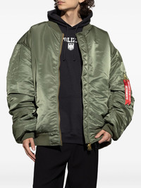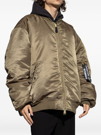 zip-fastening bomber jacket Highlights - Olive green - Satin finish - Zip fastening - Welt pockets - Ribbon tab - Rib-knit cuffs Imported Composition Outer: Nylon 100% Lining: Nylon 100%, Polyester 100% Washing instructions Read Manufacturer Guidelines