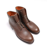 The Navvy is made on Viberg's anatomical 1940 last that sizes similarly to their 2030 Service Boots, but with a slightly more rounded toe. We suggest sizing down one full size from your standard sneaker size or brannock measurement, but consider a half size down instead if you have wide feet. Viberg's Navvy Boot is modeled after classic ankle-height derby boots, a very long-standing and versatile style that blends traditional styling with ease of wear, as their slightly less-rugged nature sets these a bit apart from the Viberg Service Boots we all know and love. While they are easy to dress up, they also offer all the style and performance needed for casual wear. We are always stoked on the variety of textured leather makeups C.F. Stead and Viberg jointly send our way, but this is surely one of the most unique. Tanganiyka is a UK-tanned buffalo hide that sets itself apart from other buffalo hides by way of its very fine grain, which grants it access to a very interesting niche: It is both fine enough to fit in with dressier embossed grain leathers, as well as textured enough to garner interest from those who enjoy coarser, more textured leathers. Noisette is a beautiful brown shade with warm golden undertones, plenty of interesting texture that will create a pleasant patina with time, and pairs very nicely with the clean, classic styling of the Navvy. - C.F. Stead Noisette Tanganikya (UK) - 1940 last - Amber vegtan lining - Narrow Noisette Tanganikya tongue - Leather toe puff structure - Plain toe - 5 blind eyelets & 4 copper brown speedhooks - Tonal French Binding - Heel stiffener - French leather soles & rubber heels - Antique leather midsole - Resoleable channeled insole goodyear welt construction - Small batch, limited run production made at Viberg's factory in Victoria, BC