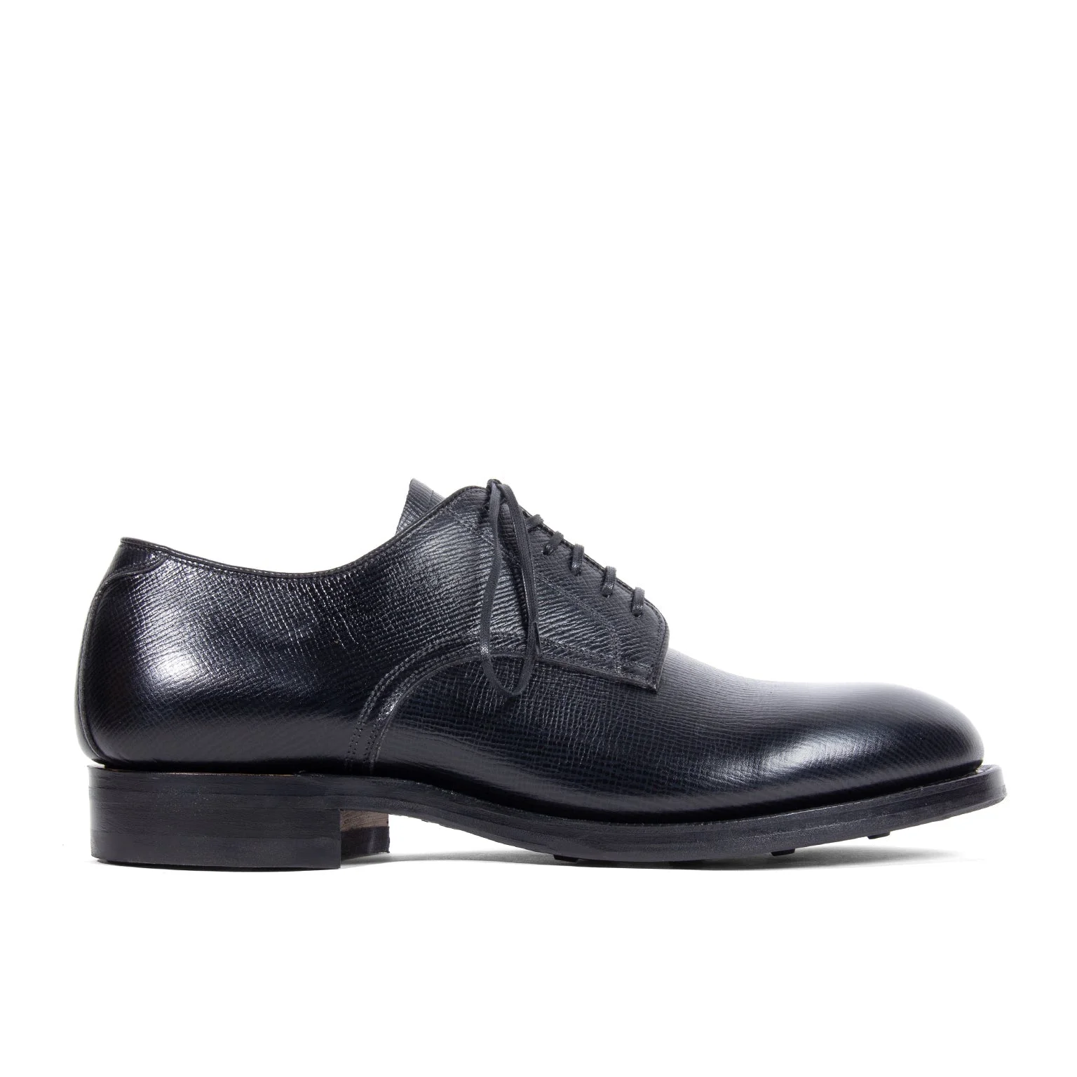 A refined Derby shaped through discipline and craft. Constructed using traditional Channeled Insole Goodyear Welt, the Navvy Cut Shoe reflects precise workmanship and balanced proportion. Details • Tannerie d'Annonay Alcazar Calf (FR) • Full Lining • Blind Eyelets • Cantilever Last • 270 Black Flat Welt • Dainite Sole