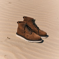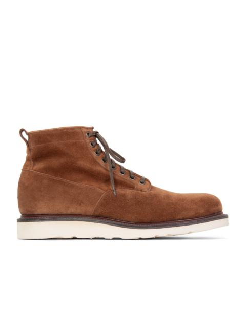Originally designed for the Japanese market our Scout Boot references our #45 Hunter boot. Details • C.F. Stead Janus Calf Suede (UK) • Channeled Insole Goodyear Welt Construction • 360 Storm Welt • Moreflex White Sole • Unlined • Natural Edge Finish • Caramel Eyelets • Leather Toe Puff & Structured Heel