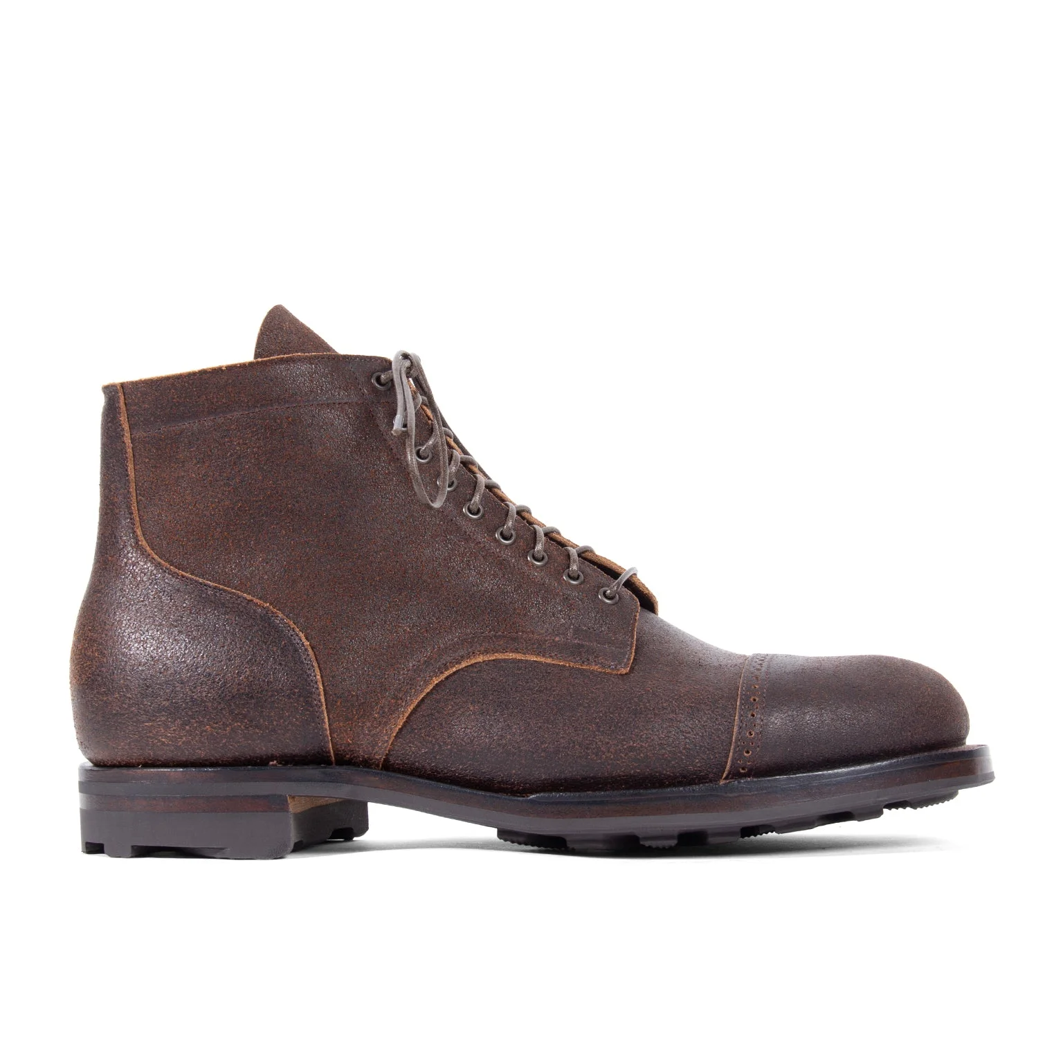 First introduced in 1931, the Stitchdown Service Boot® reflects nearly a century of shoemaking—shaped by need, refined by hand. Details • Horween Waxed Flesh (US) • Veg-tan Vamp Lining • Brogue Cap Toe • 9 #2 Copper Bronze Eyelets • 2030 Last • Stitchdown Construction • Ridgeway Sole