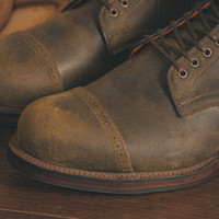 The timeless design and rugged durability of the Stitchdown Service Boot® are synonymous with the Viberg brand and have been since 1931. Details • C.F. Stead Waxy Commander (UK) • Tan Kip Lining • 9 #2 Caramel Eyelets • Antique Finish • Brown Ridgeway Sole • Stitchdown Construction • Brogue Toe Cap • Leather Toe Puff • Heel Stiffener