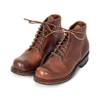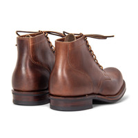 The timeless design and rugged durability of the Stitchdown Service Boot® are synonymous with the Viberg brand and have been since 1931. Details • Horween Cypress (US) • Tan Kip Lining • 8 AA Antique Copper Eyelets • Antique Finish • Black Dainite Sole • Stitchdown Construction • Leather Toe Puff • Heel Stiffener