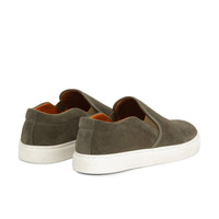 Our Slip On is based on 1960s-era vulcanized slip-on shoes and features a side-wall stitched cup sole that fully resoleable and recraftable. Details • C.F. Stead's Janus Calf Suede (UK) • Channelled Insole Goodyear Welt Construction • Tan Kip Lining • White Vibram Cup Sole • Removable Leather and Cork Insole • Cemented Construction • Heel Stiffener