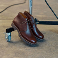 The Uplands is a 3-eye classic Chukka that is a classic silhouette that combines elegant utility with versatility, perfect for everyday use. Details • Tannerie d'Annonay Alpine Calf (FR) • Channeled Insole Goodyear Welt Construction • 360 Scalloped Welt • Extralight EVA Brown Sole • Amber Vegtan Lining • Antique Edge Finish • 3 Blind Eyelets • Leather Toe Puff & Structured Heel
