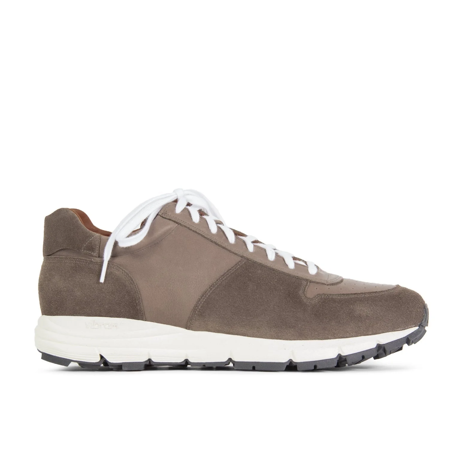 Referencing classic trainers from the 1980s, the Sneaker utilizes premium leather uppers, and 100% natural cork to cushion the Goodyear Channeled Insoles. Our sneaker is fully resoleable and recraftable. Details • C.F. Stead's Janus Calf Suede (UK) • Channelled Insole Goodyear Welt Construction • Tan Kip Lining • 8 Blind Eyelets • Black & White Vibram Fuga Sole • Cemented Construction • Removable Cork and Leather Insole • Ping Pong Toe Puff • Heel Stiffener
