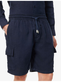 PRODUCT DETAILS - Vilebrequin linen shorts - 100% linen - Pulls on - Regular fit, mid-rise, straight leg, drawstring elasticated waistband, two slip pockets at front, flap pockets at sides, flap pocket at back, brand patch at back - Machine wash cold - Model is 6ft 2in/1.88m and wears a size medium - Midweight, non-stretch Ref: R04313420