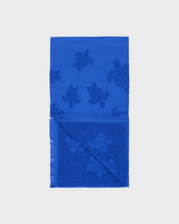 Turtles swim all over the Santah Ronde des Tortues unisex beach towel. Made from organic cotton in a plain colour, the Vilebrequin towel is perfect for drying off after your swims and makes the ideal beach accessory for spending the day in the sun, a book in your hand and sand between your toes. Turtles swim all over the Santah Ronde des Tortues unisex beach towel. Made from organic cotton in a plain colour, the Vilebrequin towel is perfect for drying off after your swims and makes the ideal beach accessory for spending the day in the sun, a book in your hand and sand between your toes. - Jacquard turtles fouta beach towel - Fringes finish - Sizes: 39.3" x 70.8" - Unisex Beach towel - Solid Unisex Beach towel - 100% Organic Cotton Product Information Style: Santah Model: STHU1201-613 Color: MARRAKECH / BLUE