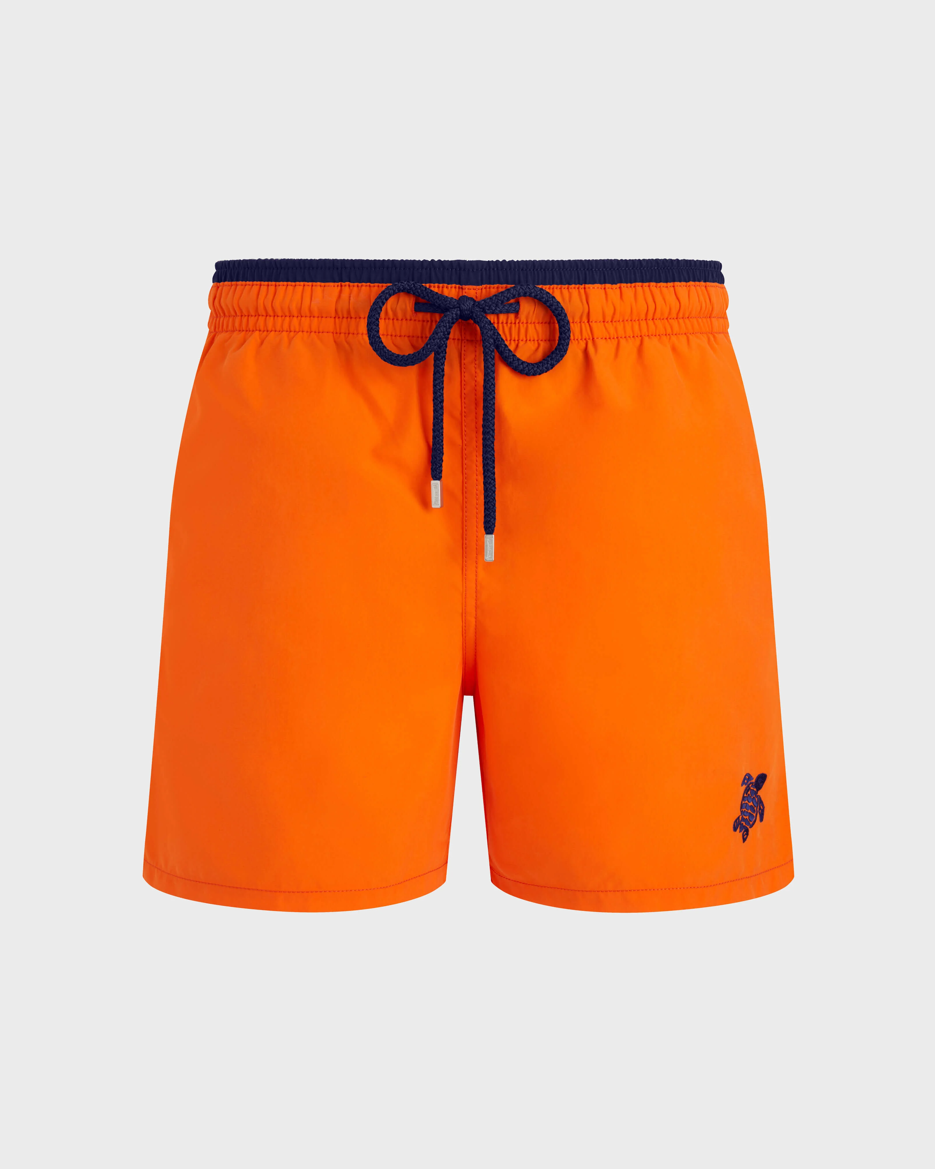 Elegance goes minimalist with these plain two-tone Moka swimming trunks. Look for the most serene of sea creatures undulating peacefully as part of a timeless contrast. Elegance goes minimalist with these plain two-tone Moka swimming trunks. Look for the most serene of sea creatures undulating peacefully as part of a timeless contrast. - Bicolor swim trunks for men with contrasting color inside waistband and .5" of outer waistband - Elastic waistband with drawstring and Zamac tips engraved with Vilebrequin - Two side pockets and one rear pocket with velcro flap - Men's swim trunks with two back eyelets allow water to drain and reduce the “balloon” effect when emerging from the water - Embroidered Turtle on bottom of left leg - Side leg length in size M: 15.6" - Men Swim Trunks - Men Swim Trunks Solid Bicolore - Model wears size M - Model measurements: Bust 37.4”, Height 72.4”, Waist 29.5”, Hips 37” - 100% Recycled Polyamide Product Information Style: Moka Model: MOKU3A01-195 Color: APRICOT / ORANGE
