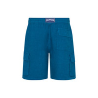 As the perfect embodiment of casual elegance and the spirit of Saint-Tropez, these Baie men's Bermuda shorts feature charming overdyed linen for Vilebrequin's own brand of casual chic. - Casual men bermuda short - Two italian pockets and two cargo pockets on sides - One back pocket with a flap - Elastic waistband with tone on tone drawstring and metal tips - Bottom leg width in size M: 29.00cm - Side length in size M: 49.00cm - Men Bermuda Shorts - Solid men Bermuda Shorts - 100% Linen Product Information Style: Baie Model: WB-BAIU3U01-HOM-611 Color: PEACOCK / BLUE
