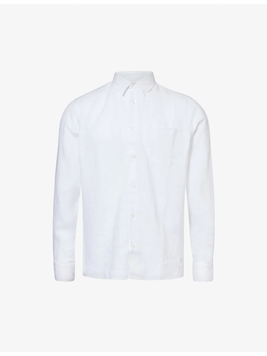 PRODUCT DETAILS - Vilebrequin linen shirt - 100% linen - Exposed button fastening at front - Spread collar - Buttoned cuffs - Regular fit, collar, long sleeves, patch pocket at front, straight yoke and pleats at back, curved hem - Machine wash cold - Model is 6ft 2in/1.88m and wears a size medium - Lightweight, stretchy Ref: R04305712