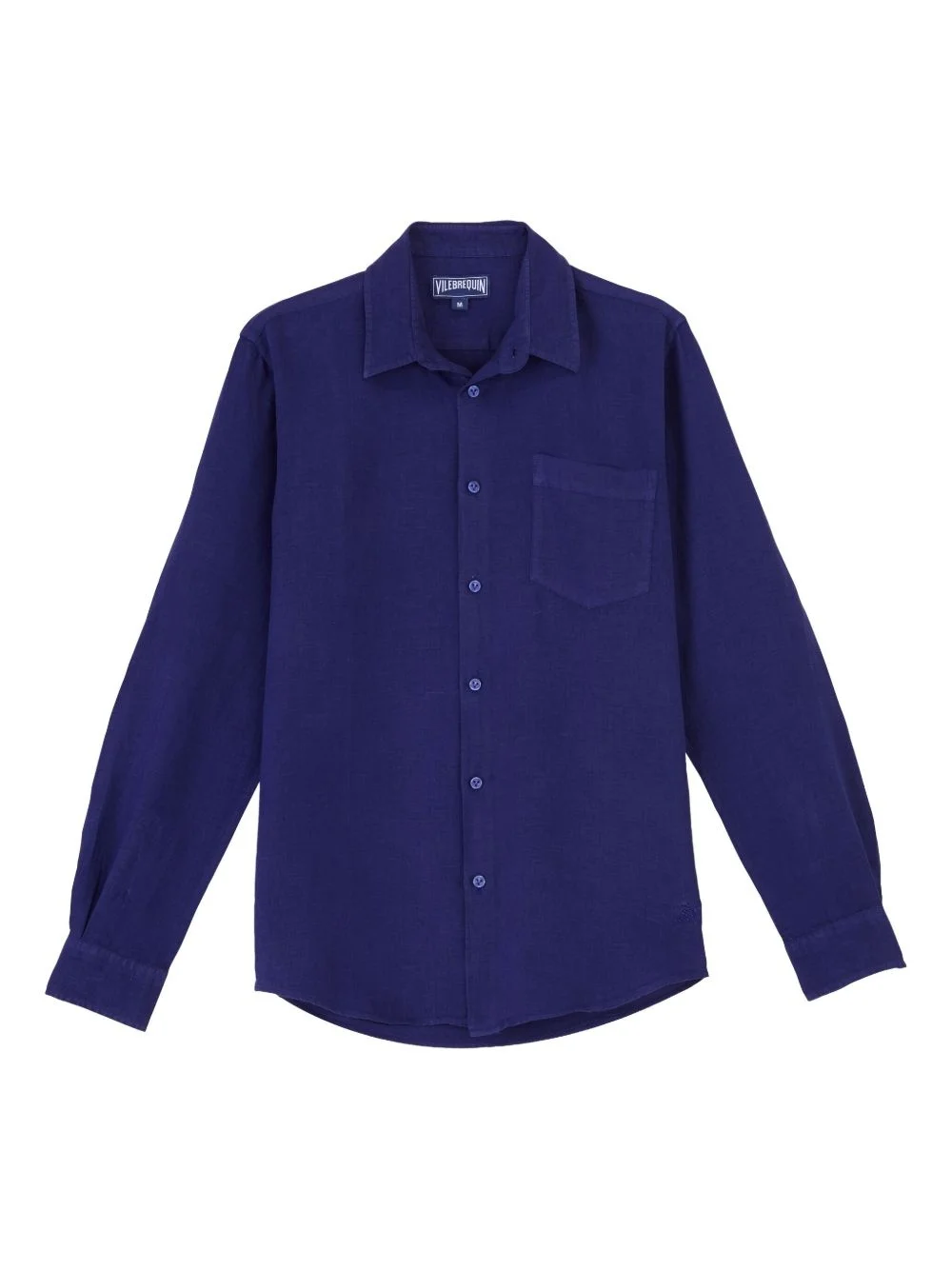 Caroubis long-sleeve shirt Highlights - Dark blue - Front button fastening - Long sleeves - Single chest patch pocket - Curved hem Imported Composition Linen/Flax 100% Washing instructions Read Manufacturer Guidelines