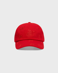 This 6-panel baseball cap features a curved peak, adjustable strap back, and tone-on-tone turtle embroideries, combining comfort and style - 6-panel baseball cap with curved peak - Adjustable with a straback system, the best way to fit the cap perfectly on your head - Embroidered all-over round tortoise tone on tone - Regular cut - 100% Cotton Product Information Style: Castle Model: CTLC4493-228 Color: LIPSTICK / RED