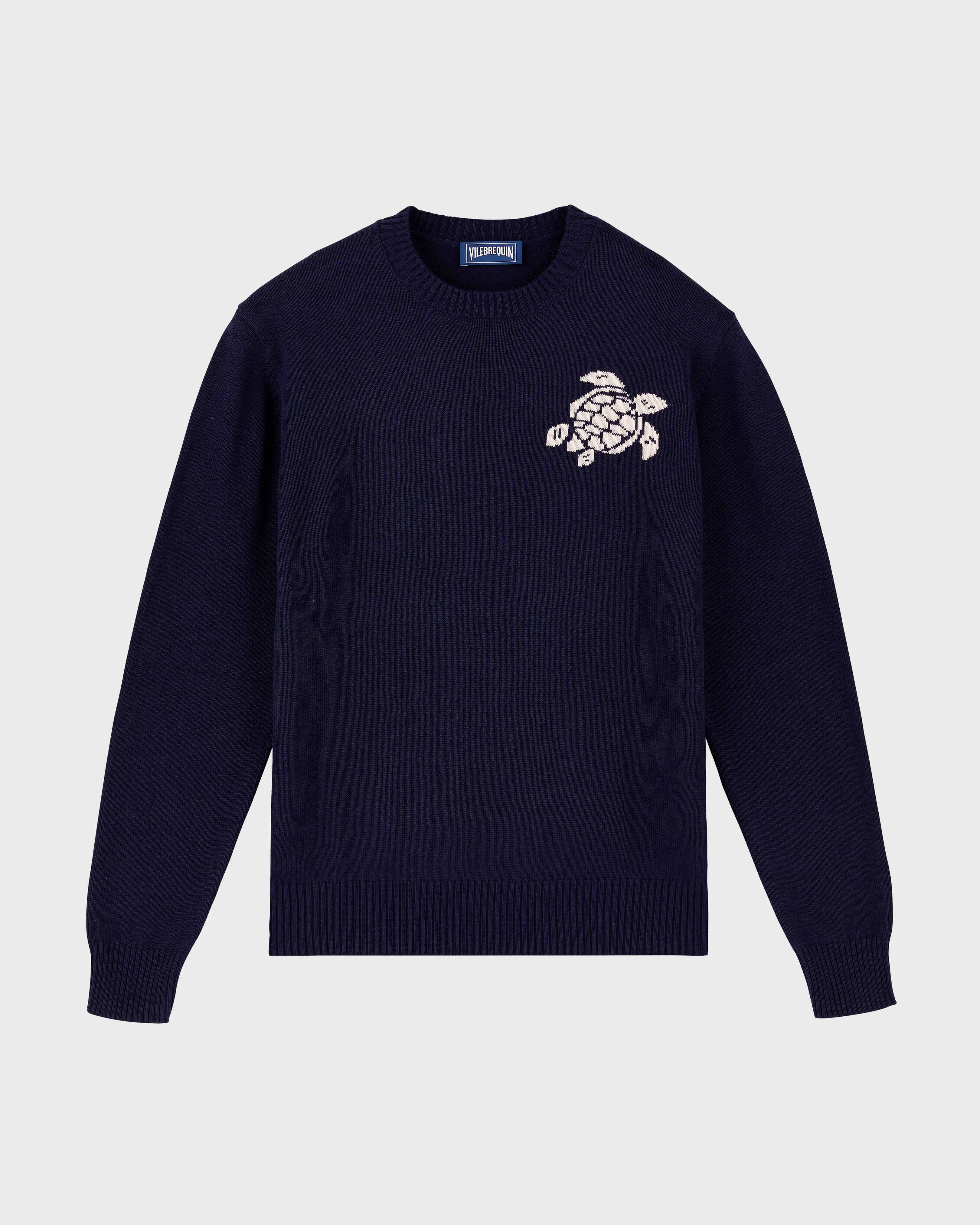Product Detail A classic crew-neck men's jumper with an eye-catching turtle on the chest. Cotton and cashmere offer an easy-to-wear feel. A jumper to add a sense of refinement to any occasion. - Men Crew-neck jumper - Contrasting jacquard turtle at the chest - Ribbing at the collar, cuffs and chest - The model is 73.6" tall and wears a size L - Men Sweater Solid - Men Sweater - 95% cotton 5% cashmere Care To take care of your favourite pullover, we advise you to follow our suggestions below: - Wash your pullover at 86F with similar colors. - Do not use oxygenated or chlorine based bleach/ stain removers. - Air-dry your pullover and do not use tumble dryer. - Regular steam or dry iron, with maximum setting at 3F.