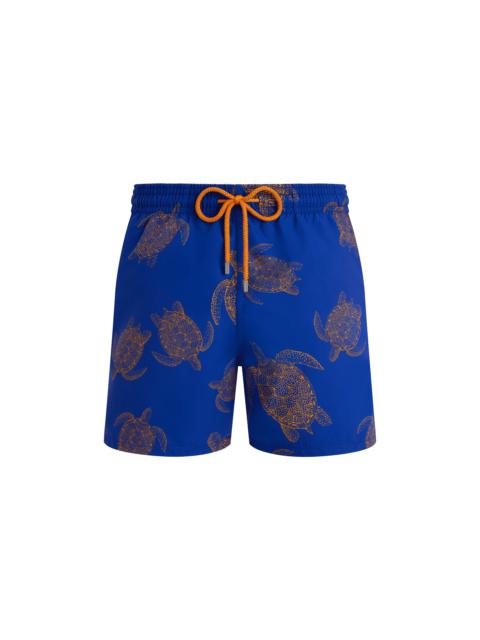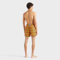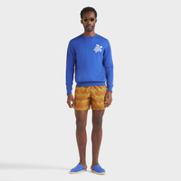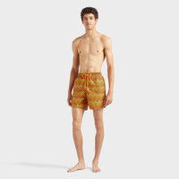 Celebrate summer in this eye-catching pair of turtle-embellished swim shorts crafted in quick-dry, ultra-light fabric. A comfortable elasticated waist and drawstring featuring Vilebrequin-engraved tips complete the detail. - Men Elastic waistband swim trunks with drawstring and zamac tips engraved Vilebrequin - Side pockets - Hand-placement of back pocket for perfect visual alignment with swimwear print - Two back eyelets allow water to drain and avoid swim trunks from ballooning when emerging into water - Fully lined with water-resistant mesh lining (100% polyamide) - Side leg length in size M: 15.6" - Inseam length in size M: 5,9" - The model is 6'0.83" and wears a M size - Men Swim trunks - Men Swim trunks Herringbones Turtles - 100% recycled polyamide Product Information Style: Moorea Model: MOOCB106-140 Color: VITAMIN / ORANGE
