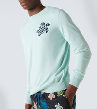 Add this sweater from Vilebrequin to your refined staples collection. Knitted from cotton, this crewneck style is complete with a jacquard turtle for instant recognition. Product Details - Material: 100% cotton - Care instructions: machine wash at 30 degrees - Made in Italy - Designer color name: Pacific - Item color: blue - Item number: P01051287 Size & Fit - True to size - For a looser fit, we recommend taking one size up - Slim fit - Stretchy fabric - Slightly cropped - Height of model is 189cm-74.5" and wears a size L