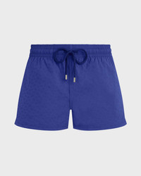 Get the tropical look in these jacquard men's swim trunks adorned with turtles. Crafted from stretch recycled polyamide and elastane with an elastic drawsting waist for the perfect fit. - Short printed men swim trunks - Elastic waistband - Drawstring, zamak tips engraved Vilebrequin - Side pockets - The model is 72" tall and wears a size M - Men short Swim Trunks Tortues Jacquard - Men Swim Trunks - 95% recycled polyamide 5% elastane Product Information Style: Manta Model: MTAU3E39-613 Color: MARRAKECH / BLUE