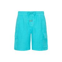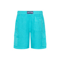 As the perfect embodiment of casual elegance and the spirit of Saint-Tropez, these Baie men's Bermuda shorts feature charming overdyed linen for Vilebrequin's own brand of casual chic. - Casual men bermuda short - Two italian pockets and two cargo pockets on sides - One back pocket with a flap - Elastic waistband with tone on tone drawstring and metal tips - Bottom leg width in size M: 29.00cm - Side length in size M: 49.00cm - Men Bermuda Shorts - Solid men Bermuda Shorts - 100% Linen Product Information Style: Baie Model: WB-BAIU3U01-HOM-431 Color: DISCO GREEN / GREEN