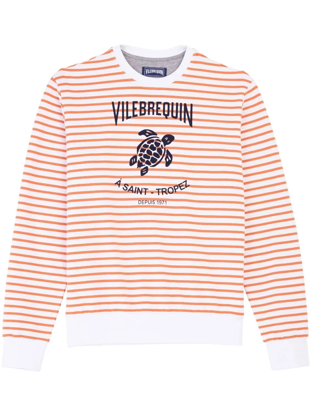 logo-print cotton-blend sweatshirt Highlights - Orange/white/navy blue - Cotton blend - Stretch-jersey - Stripe print - Logo print to the front - Crew neck - Long sleeves - Ribbed cuffs and hem Made in Italy Composition Cotton 95%, Elastane 5%