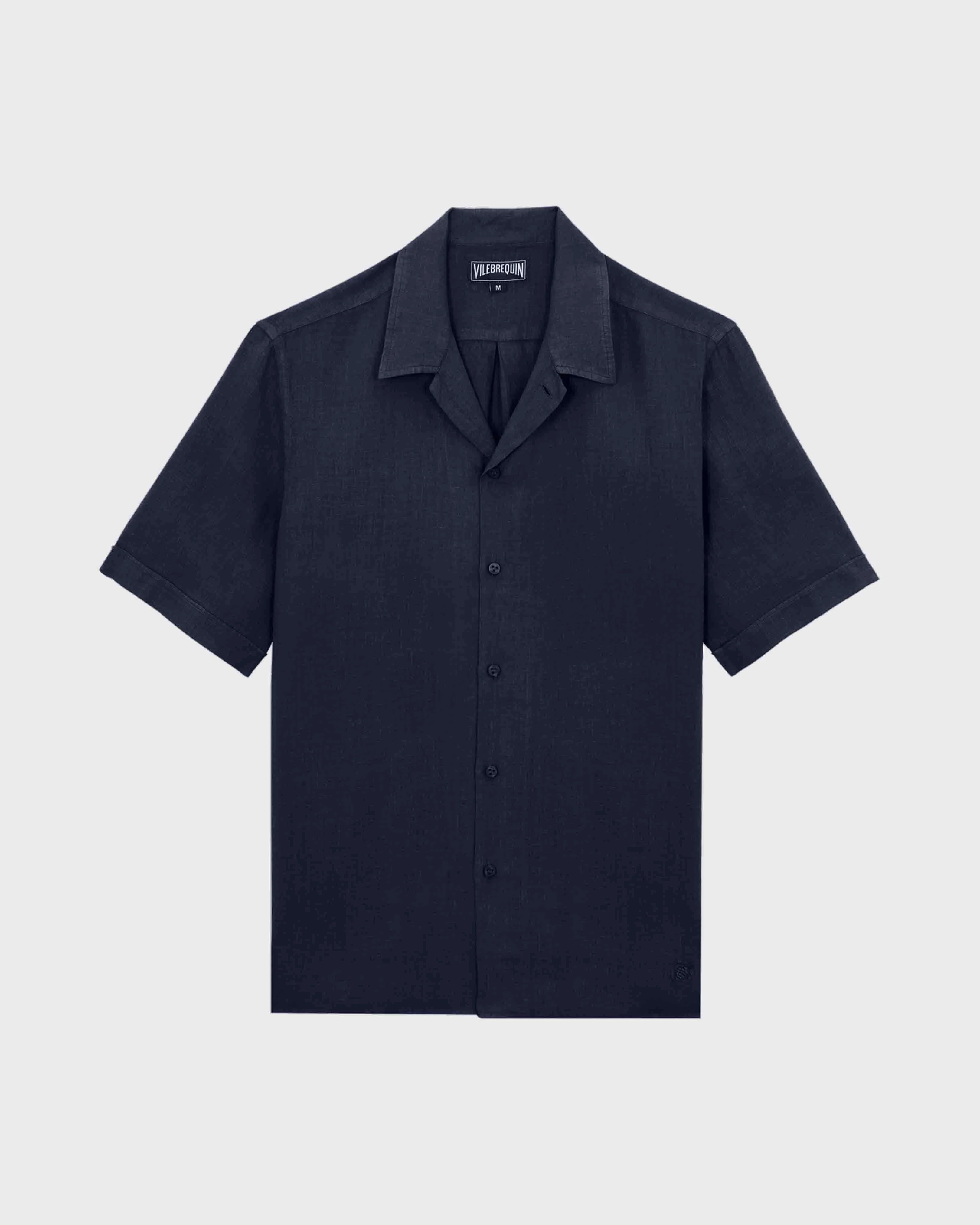 Product Detail A refined short-sleeve linen shirt, effortlessly elegant, with a relaxed collar and a discreet tone-on-tone turtle embroidery—subtle detail meets timeless summer sophistication. - Bowling shirt - Short sleeves with turned back cuffs - Embroidered turtle tone-on-tone on the bottom left - Button fastening - Men Shirt - 100% Linen Care To take care of your men Shirt we advise you to follow our suggestions below: - Wash at 30'C - Dry line in the shade - Do not bleach - Do not tumble dry - Iron at low temperature - Do not dry clean