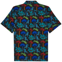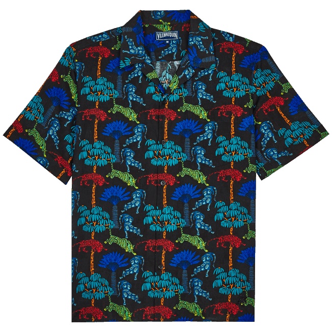 - Bowling shirt - Short sleeves with turned back cuffs - Chest pocket - Two slots on each side - Embroidered turtle tone on tone on the bottom left - Button fastening - Model wears size M - Model measurements : Bust 40”, Height 74”, Waist 31”, Hips 37” - Men's summer shirt - Tiger Leap men bowling shirt - 60% cotton - 40 % linen