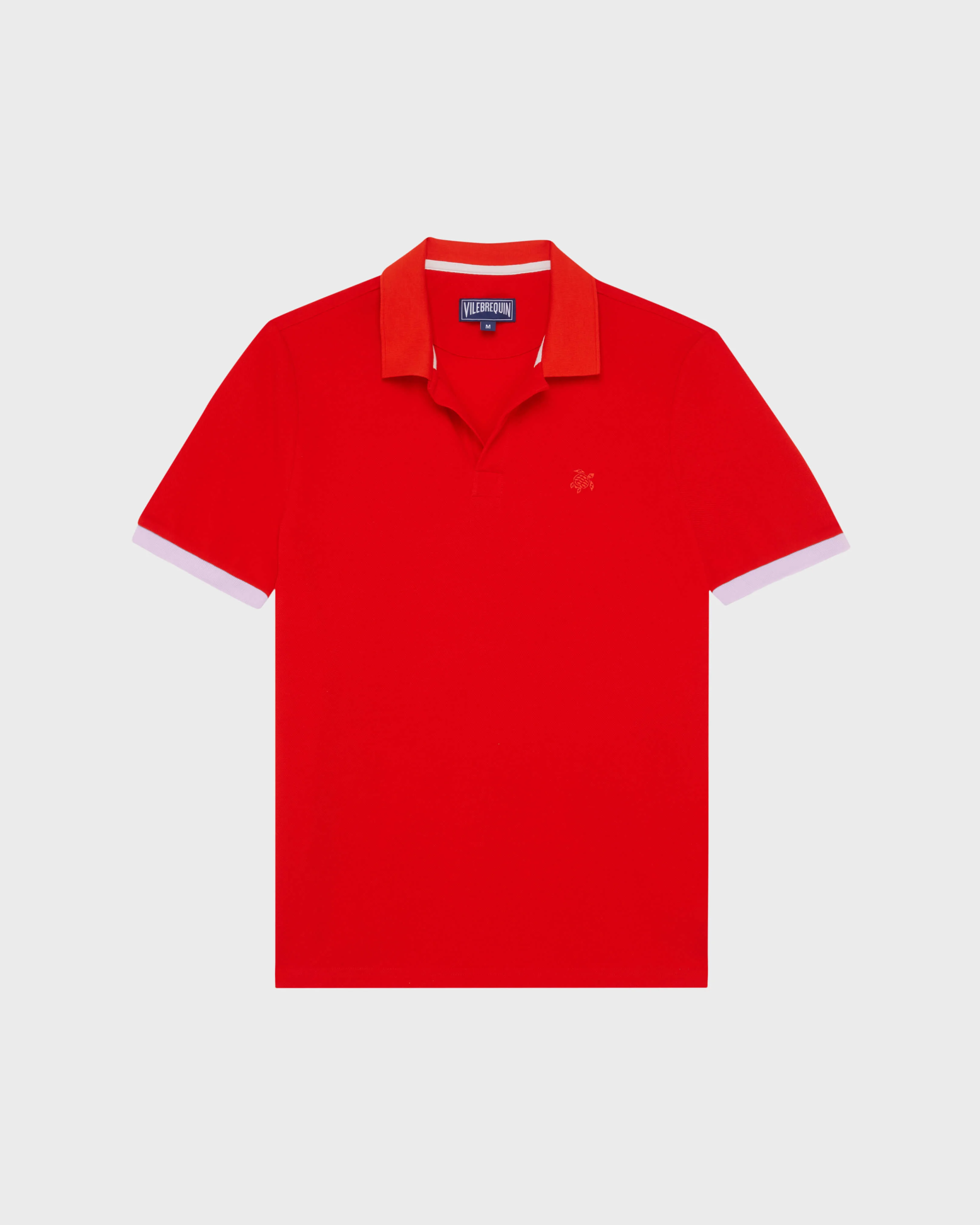 Product Detail The iconic men polo shirt takes centre stage in the summer wardrobe with short sleeves and a ribbed collar and cuffs. The iconic embroidered turtle completes the detail. - Men cotton pique polo with short sleeves - Tone on tone embroidered Turtle on the chest and printed Vilebrequin logo under collar - Finishings in constrasted color and two back eyelets at the back - No button at the front placket - Colour changing thread worked into the contrasts of the collar - Men Polo - Men Polo Solid - 100% Organic Cotton