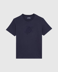 A plain colour t-shirt that elevates style with the iconic large turtle on a tone-on-tone print on the front. Crafted from cotton and in a regular cut for easy wear. - Round collart-shirt - Pattern and Vilebrequin logo printed at the front - Regular cut - Made in italy - Men T-shirt - Men T-shirt Embroidered tone on tone Turtle - 100% cotton