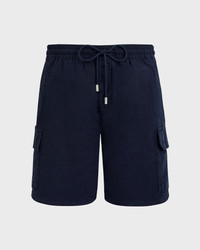 As the perfect embodiment of casual elegance and the spirit of Saint-Tropez, these Baie men's Bermuda shorts feature charming overdyed linen for Vilebrequin's own brand of casual chic. Keep your holiday on track with the Baie Man Bermuda shorts. With a casual design and cargo pockets, these soft and comfortable linen Bermuda shorts are perfect for any trip. On the beach with flip-flops, in the city with a T-shirt or paired with a shirt for a casual evening out, it's the perfect choice for summer. - Relaxed men bermuda short - Two italian pockets and two cargo pockets on sides - One back pocket with a flap - Elastic waistband with tone on tone drawstring and metal tips - Bottom leg width in size M: 11.42" - Side length in size M: 19.29" - Men Bermuda Shorts - Solid men Bermuda Shorts - 100% Linen