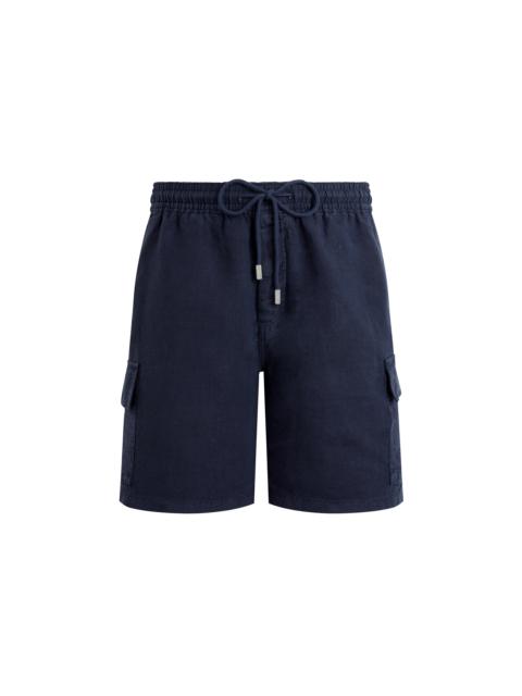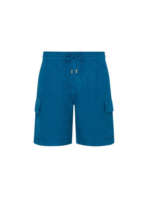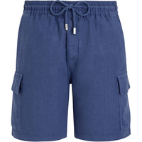 As the perfect embodiment of casual elegance and the spirit of Saint-Tropez, these Baie men's Bermuda shorts feature charming overdyed linen for Vilebrequin's own brand of casual chic. - Casual men bermuda short - Two italian pockets and two cargo pockets on sides - One back pocket with a flap - Elastic waistband with tone on tone drawstring and metal tips - Bottom leg width in size M: 29.00cm - Side length in size M: 49.00cm - Men Bermuda Shorts - Solid men Bermuda Shorts - 100% Linen