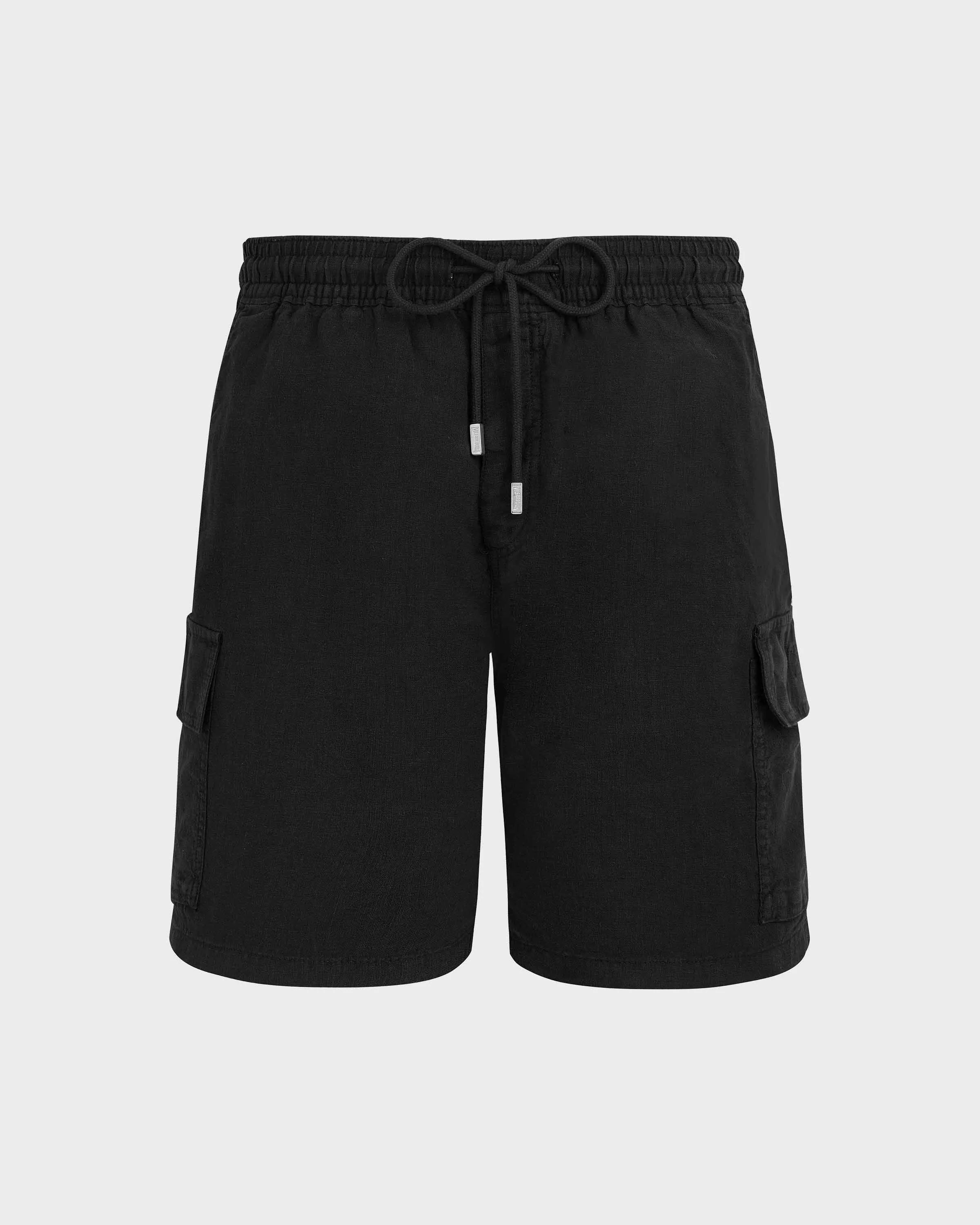 Product Detail As the perfect embodiment of casual elegance and the spirit of Saint-Tropez, these Baie men's Bermuda shorts feature charming overdyed linen for Vilebrequin's own brand of casual chic. - Casual men bermuda short - Two italian pockets and two cargo pockets on sides - One back pocket with a flap - Elastic waistband with tone on tone drawstring and metal tips - Bottom leg width in size M: 29.00cm - Side length in size M: 49.00cm - Men Bermuda Shorts - Solid men Bermuda Shorts - 100% Linen Care To take care of your precious Bermuda Shorts, we advise you to follow our suggestions below: - Wash your Bermuda Shorts at 30°C with similar colors. - Do not use oxygenated or chlorine based bleach/ stain removers, your Bermuda Shorts won't appreciate it. - Air-dry your Bermuda Shorts and do not use tumble dryer. - Regular steam or dry iron inside out, with maximum setting at 150°C. - Do not dry clean your Bermuda Shorts.