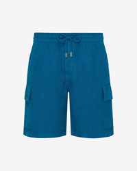 Product Detail As the perfect embodiment of casual elegance and the spirit of Saint-Tropez, these Baie men's Bermuda shorts feature charming overdyed linen for Vilebrequin's own brand of casual chic. - Casual men bermuda short - Two italian pockets and two cargo pockets on sides - One back pocket with a flap - Elastic waistband with tone on tone drawstring and metal tips - Bottom leg width in size M: 29.00cm - Side length in size M: 49.00cm - Men Bermuda Shorts - Solid men Bermuda Shorts - 100% Linen Care To take care of your precious Bermuda Shorts, we advise you to follow our suggestions below: - Wash your Bermuda Shorts at 86F with similar colors. - Do not use oxygenated or chlorine based bleach/ stain removers, your Bermuda Shorts won't appreciate it. - Air-dry your Bermuda Shorts and do not use tumble dryer. - Regular steam or dry iron inside out, with maximum setting at 300F. - Do not dry clean your Bermuda Shorts.