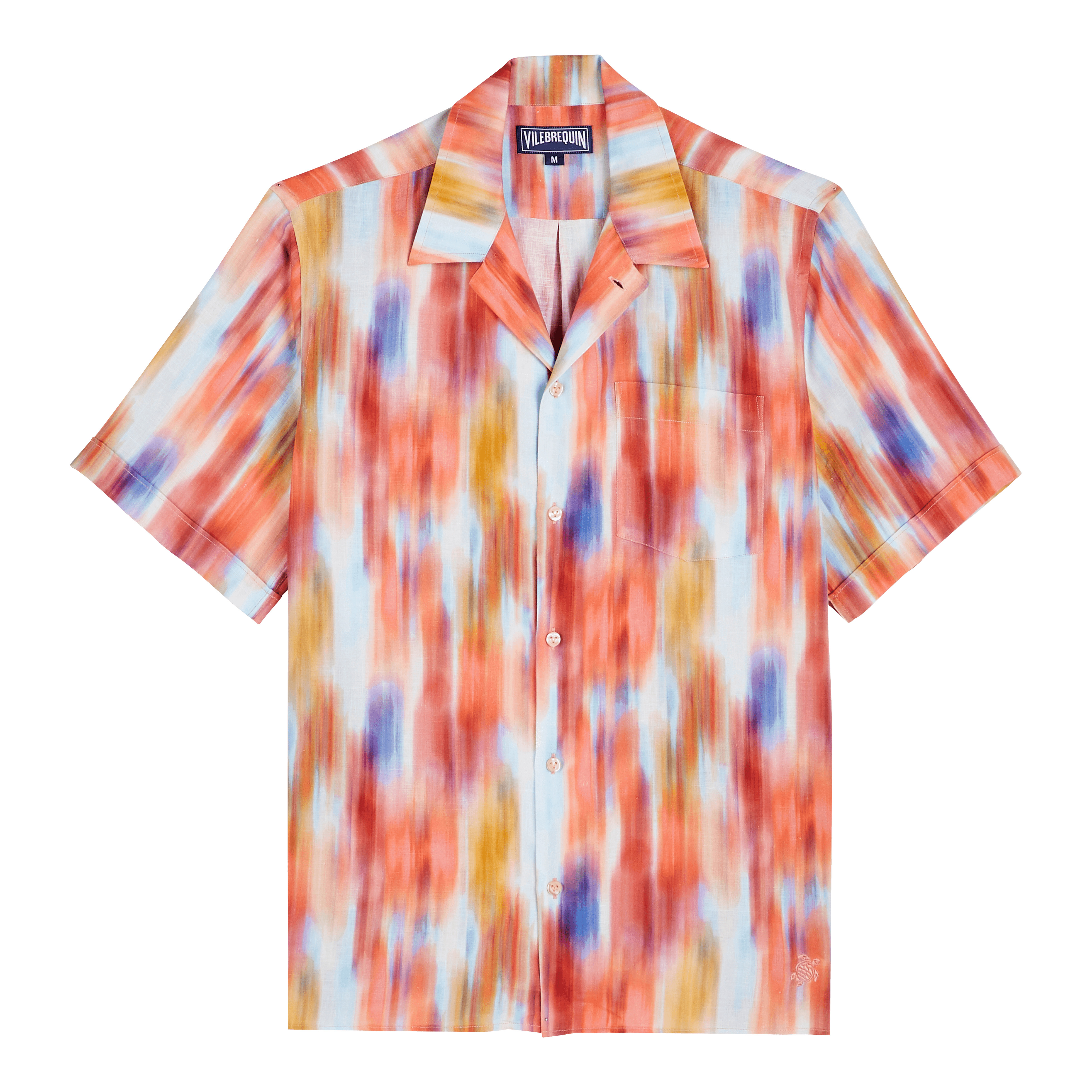 The traditional ikat technique comes into its own on the Charli Ikat Flowers linen shirt for a stylish getaway inspired by the thousand colours of Indonesia. - Men linen bowling shirt - Men short sleeves shirt with turned back cuffs - Chest pocket - Two slits on each side - Embroidered turtle tone on tone on the bottom left - Button fastening - Middle back Length for a size M: 29.13" - Ikat Flowers Men Bowling Shirt - Men Linen Bowling Shirt - 100% Linen