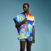 Kenny Scharf’s paintings build a childlike and happy universe, imbued by vibrant colors. Asking for an uninhibited look to his art, the artist applies here on textile his figures like he would on canvases or walls. Swimsuits, beachwear and accessories constitute Scharf’s generous first collection for Vilebrequin. - Bowling shirt for men - Short sleeved bowling shirt with turned back cuffs - Chest pocket - Two slots on each side - Button fastening - Middle back Length for a size M: 74.00cm - Vilebrequin x Kenny Scharf - Men Bowling Shirt - Men Linen Shirt Mareviva - 100% Linen