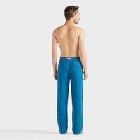 Crafted from cool linen and styled with two Italian side pockets and a back pocket, these casual pants are offer the ultimate in summer relaxation. - Relaxed fit Linen Pant - Two Italian side pockets - Back flap pocket with velcro closure - Elastic waistband, tone on tone drawstring with custom Vilebrequin zamac metal tips - Men Pants - Men Pants Solid - 100% Linen Product Information Style: Pacha Model: PACAU101-611 Color: PEACOCK / BLUE