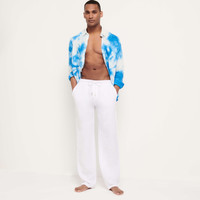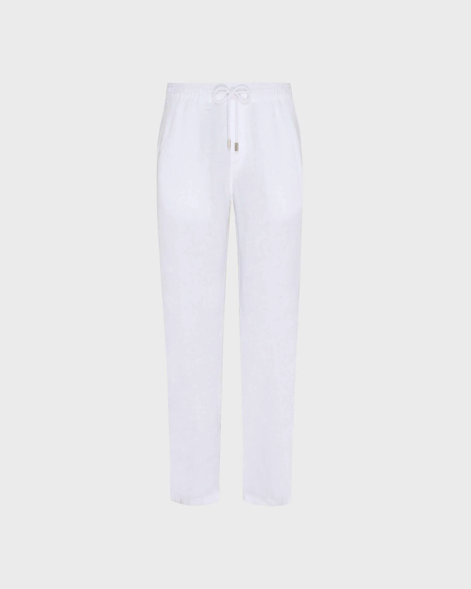 With its supple lines, the Pacha plain men's trousers are ideal for daywear as well as evenings out. Made from high quality linen, they have an elasticated waistband trimmed with a tone-on-tone drawstring with metal tips. In a casual cut, they have two slanted side pockets and one back pocket with flap. - Elastic waistband with cotton drawstring and metal tips - Two italian pockets and one back pocket with Velcro flap - Men Pants - Solid Pants - 100% Linen Product Information Style: Pacha Model: PACP613P-010 Color: WHITE / WHITE